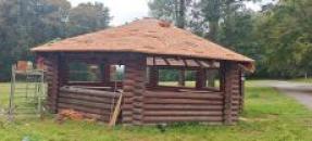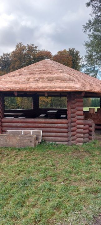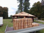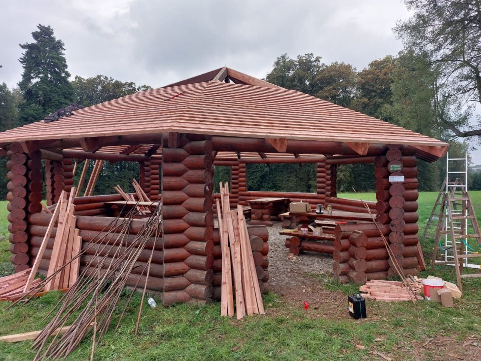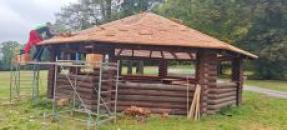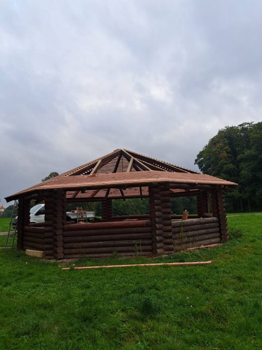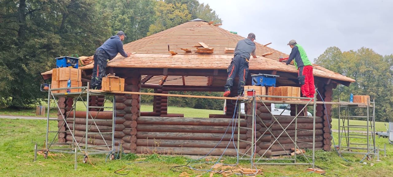 Po bouři v 07/2025 došlo ke spadnutí stromu na altán v zámeckém parku na Konopišti. Naše firma vysoutěžila jeho opravu, na kterou jsme využili štípanou alpskou modřínovou šindel.